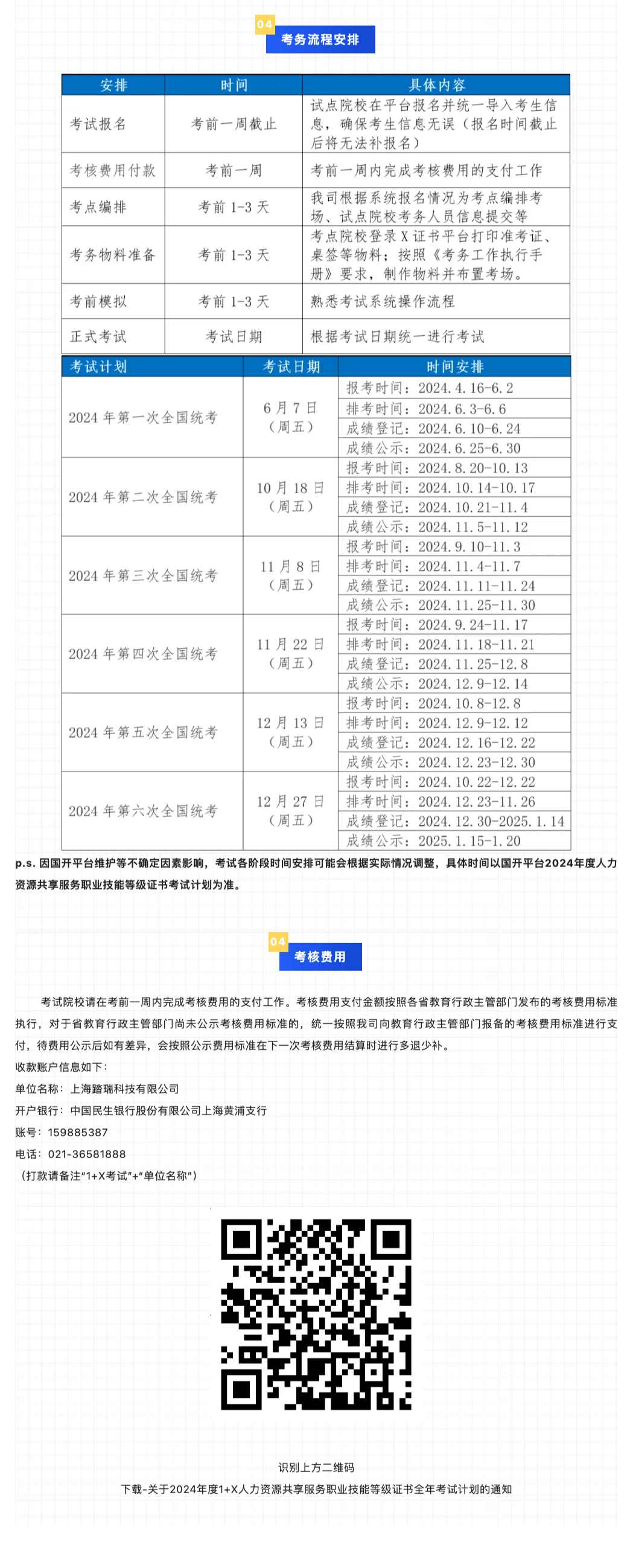 考试计划|2024年“1+X”人力资源共享服务职业技能等级证书